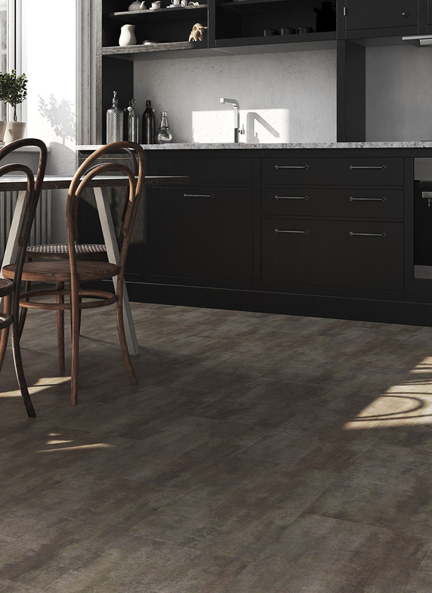 - Produktaufbau: Der SPC Produktkern hat dank seiner mineralischen Bestandteile eine optimierte Formstabilität und Druckfestigkeit gegenüber Vollvinylfußböden. Bestehende Untergründe müssen vor der Installation daher nicht speziell vorbereitet oder zwangsläufig entfernt werden.